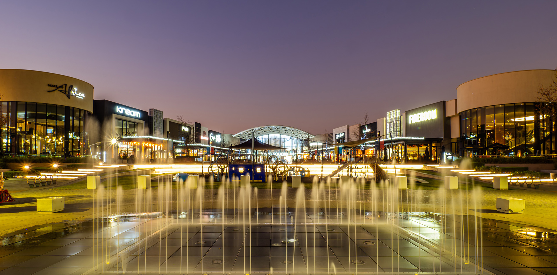 Located in front of Mall of Africa and facing the Tyssenkrupp elevator, Waterfall Park features open spaces, benches, and trees. It hosts regular open-air cinema nights and pop-up events in the stylish Midrand block.