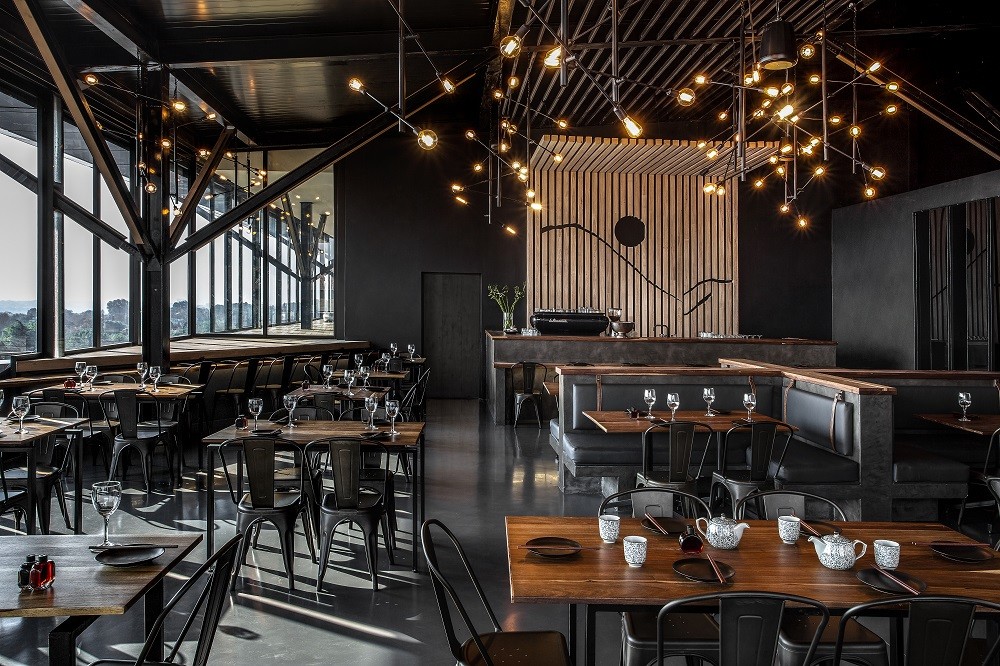 Chef David Higgs's rooftop restaurant features a live-fire grill in an open kitchen. It offers spectacular views towards the Magaliesberg and serves meats and seafood cooked on the flames in a sophisticated setting.