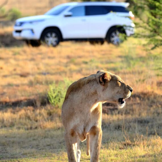 - 2-hour game drive in a specialized open safari vehicle