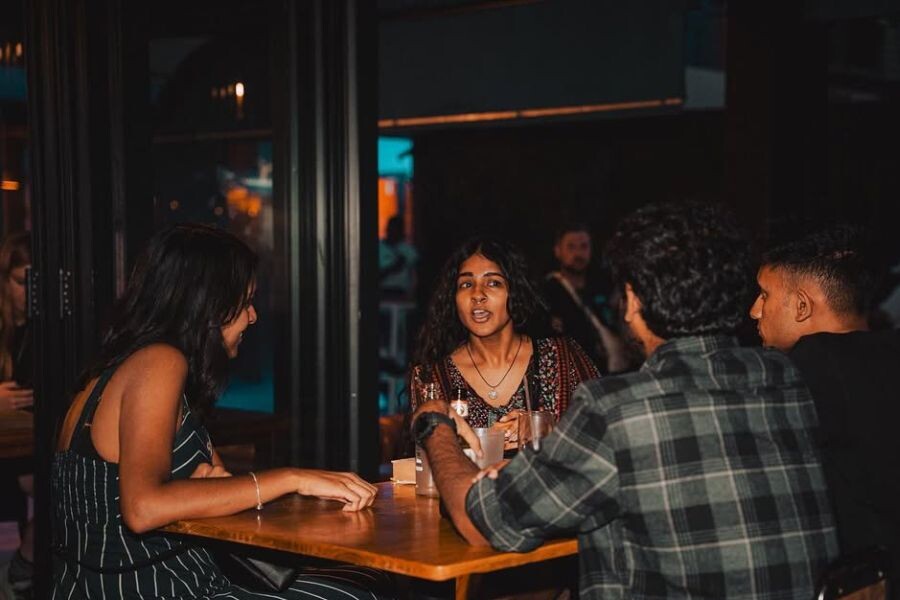 A chic Indian restaurant located in The Zone @ Rosebank. It features a burnt orange and navy interior and serves an Indian street food-inspired menu, including papri chaat and masala dosa.