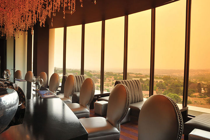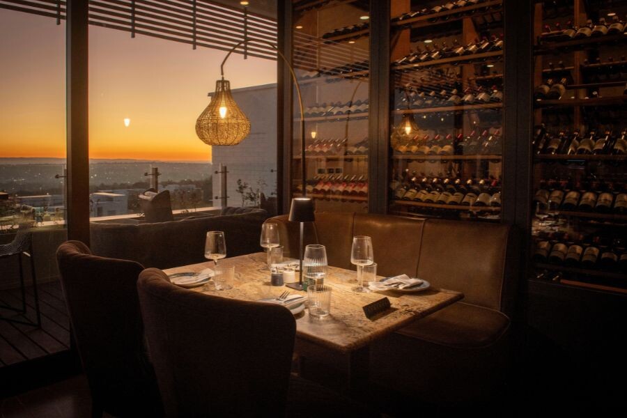 Chef David Higgs's rooftop restaurant features a live-fire grill in an open kitchen. It offers spectacular views towards the Magaliesberg and serves meats and seafood cooked on the flames in a sophisticated setting.