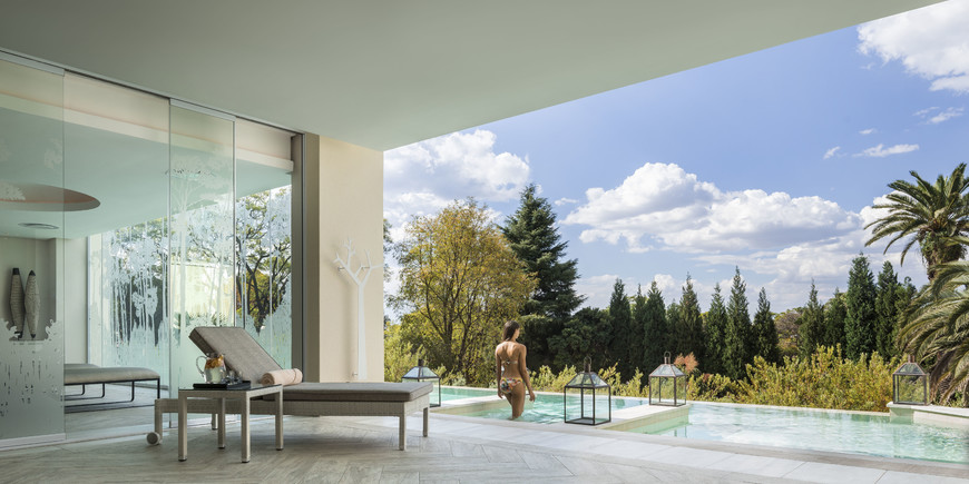A world-class spa at the Four Seasons Hotel Westcliff. It features a relaxation area, saunas, small treatment rooms, and a pergola staircase, offering single or couple treatments.